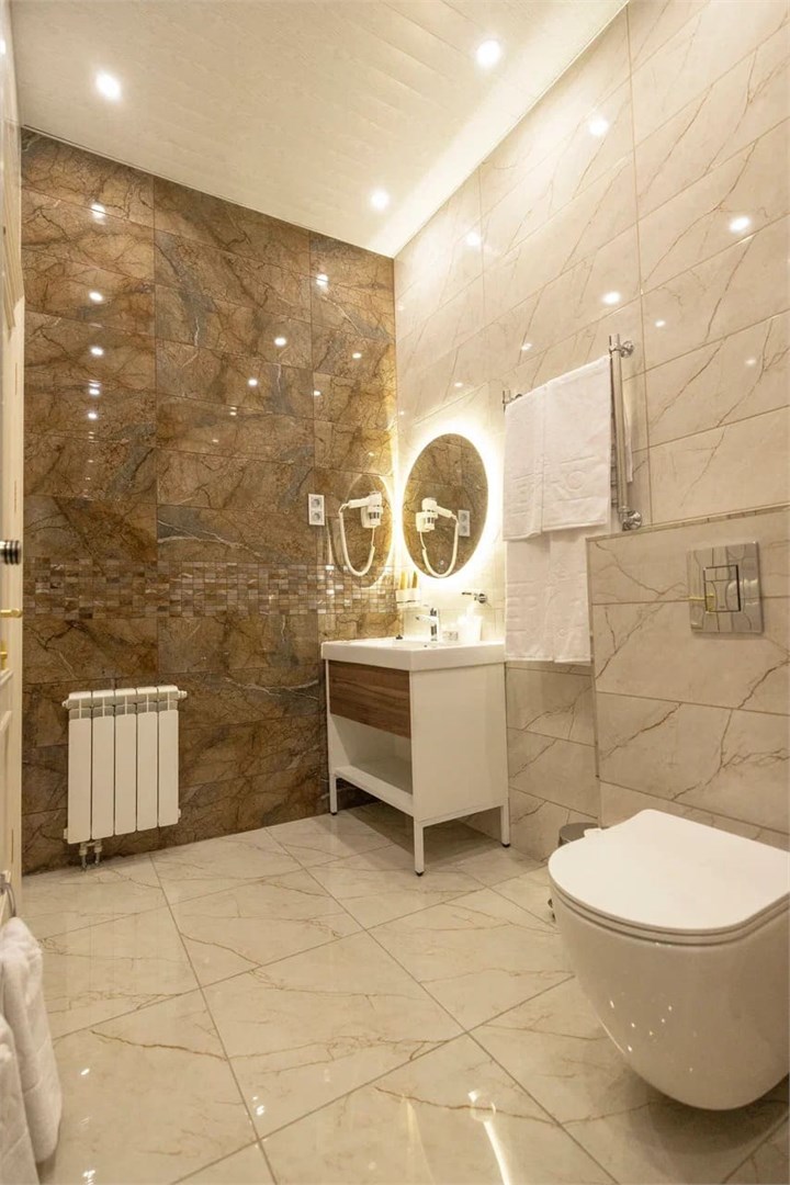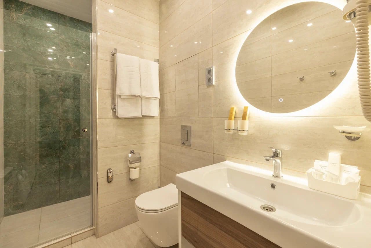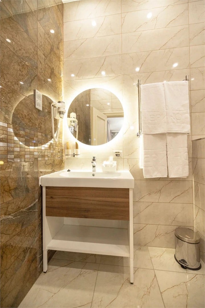 Номер идеален для романтического путешествия вдвоём или для семьи, ищущей простор и исключительный комфорт. Этот изысканный номер станет настоящим убежищем от повседневной суеты. Погружаясь в его теплую атмосферу, вы почувствуете, как время замедляется, а окружающий мир становится ненавязчивым фоном для вашего отдыха. Просторные окна впускают в комнату играющий свет, создавая особый уют и неповторимую гармонию. Здесь каждая деталь, от мягкой палитры текстиля до деликатного декора, создана для вашего комфорта. Ванная комната светится чистотой и простором. Она порадует вас свежестью утреннего света, проникающего через большое окно, и элегантным дизайном. Каждая деталь продумана до мелочей, чтобы подарить вам комфорт и наслаждение. Этот уютный уголок станет вашим домом вдали от дома, дарящим тепло и покой в каждом мгновении пребывания.